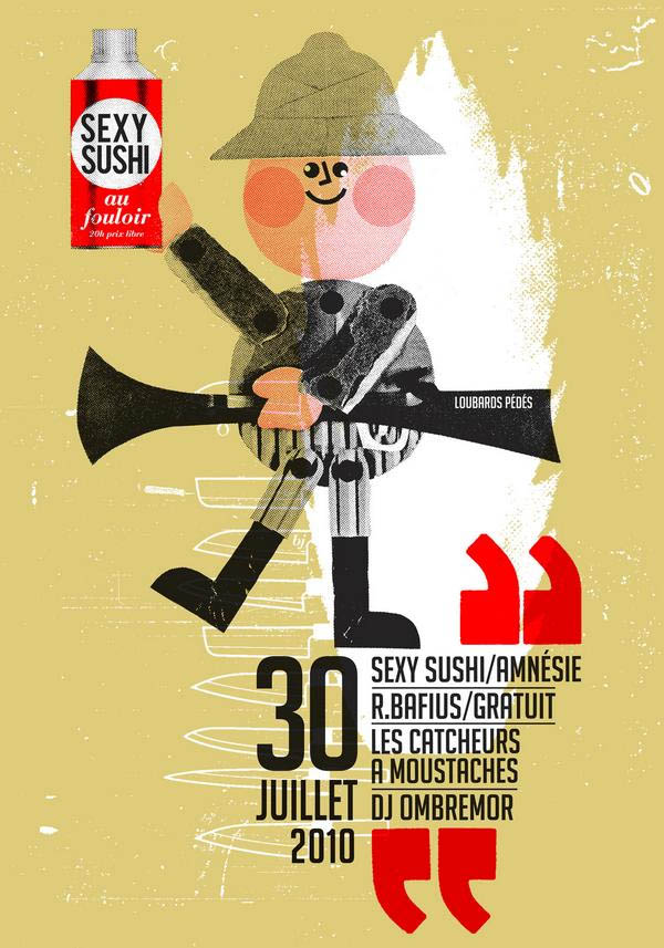 Pas un best of, ni un top ou même un showcase mais une sélection d’affiches qui, sur la toile ou dans la rue, ont accroché notre regard en 2010. Lorsqu’ils existent, vous pouvez accéder aux sites des illustrateurs en cliquant sur leur nom. Nous publieront régulièrement sur « Eo le blog » des affiches. Vous pouvez participer en nous soumettant vos trouvailles (eoaffiche@gmail.com). Quelques règles sont à respecter : les affiches doivent être, d’une façon ou d’une autre dessinées, les auteurs identifiés et les événements à venir.