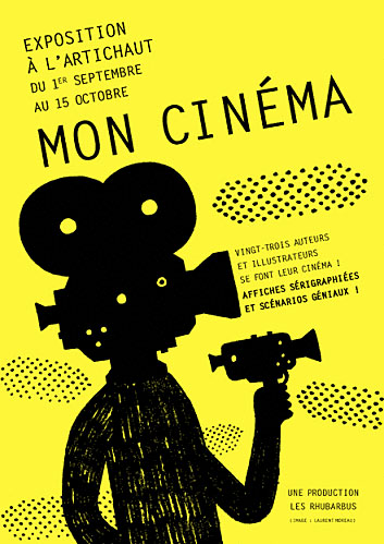 L’âge d’or des affiches de cinéma illustrées est derrière nous. A part quelques belles exceptions – Christophe Blain sur Tournée ou Blutch chez Alain Resnais – les producteurs préfèrent aujourd’hui utiliser Photoshop et ses montages et faire des affiches de films un outil de promotion plutôt qu’une œuvre qui incite à imaginer et rêver le film que l’on va aller voir. Il ne reste plus aux illustrateurs-cinéphiles, qu’à faire des affiches «virtuelles» et imaginaires de films existants. Comme dans un monde parallèle affranchit des contraintes commerciales et où l’illustration aurait droit de cité, on peut trouver sur les sites de graphistes et d’illustrateurs des affiches personnelles, souvent minimalistes, inspirés de classiques et de films récents. Une autre étape a été franchie par les Rhubarbus, qui ont réalisé des affiches imaginaires, mais cette fois les films eux-mêmes sont virtuels. Le résultat est une exposition de 15 œuvres qui a eu lieu à Strasbourg, réunissant des textes et des sérigraphies.