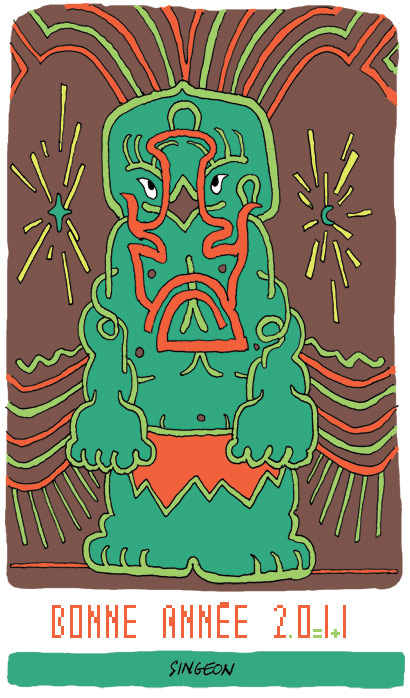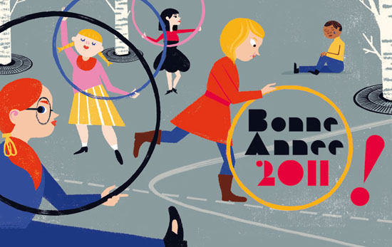 Plutôt que de vous souhaiter une bonne année en ajoutant une carte aux milliers en circulation, voici une petite sélection de cartes de dessinateurs que l’on aime. Du plus mignon au plus pêchu ! [Cliquez sur les noms pour aller sur les sites des auteurs]