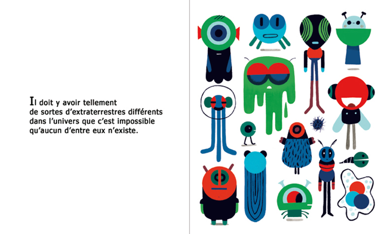 Vincent Mathy : J’ai toujours été passionné par l’humour graphique, pour moi pas de clivages, j’aime les transfuges … J’aime lorsqu’un graphiste, un designer, un typographe, s’invite dans le monde du livre jeunesse. Les exemples sont multiples et souvent intéressants. Massin, Enzo Mari,Paul Rand, Lenica, Flisak, Saul Bass, Voutch, Lebedev…