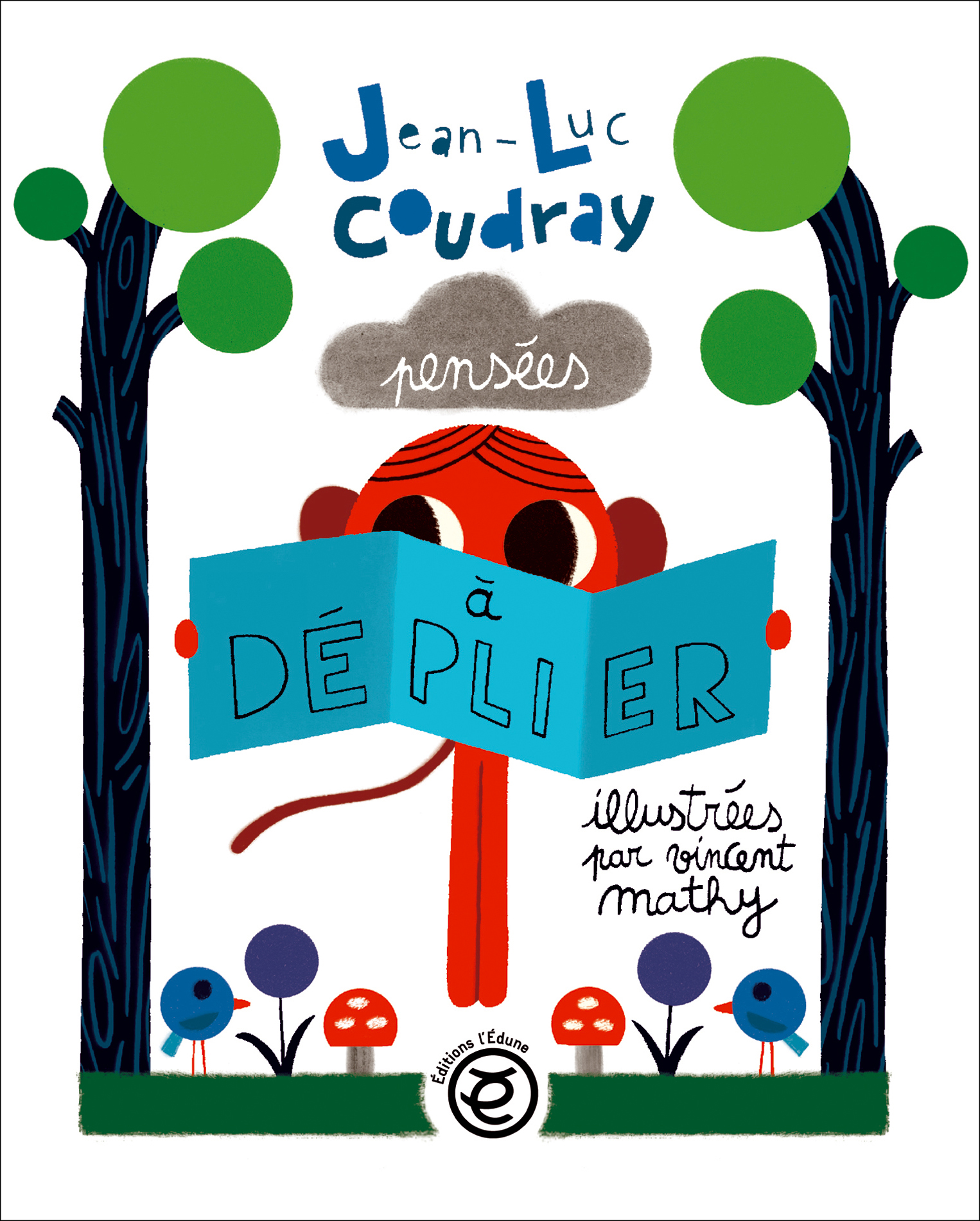 Pensées à déplier est un petit livre par le format ; seulement quelques phrases par pages illustrées par Vincent Mathy de façon minimalistes et précises, sans surcharge, juste pour cadrer.