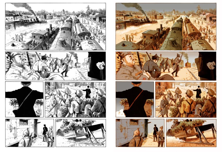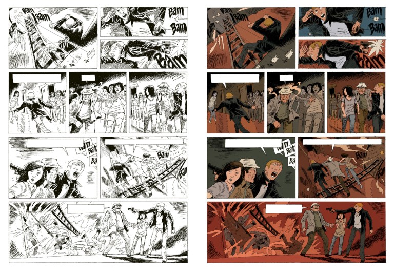 I. M. : Oui, si ce n’est que la musique d’un film existe sans le film, alors que la couleur d’un album ne peut exister sans l’album. C’est pourquoi, d’un point de vue juridique, les coloristes ne sont pas considérés comme auteurs. On estime que leur apport à l’œuvre n’est pas dissociable de l’œuvre préexistante en N&B. C’est un fait indiscutable, la couleur sans le dessin ne peut exister. Mais on ne publie jamais l’album en N&B, alors comment savoir ce qu’apporte la couleur à l’œuvre? Il faudrait pouvoir comparer les deux lectures, avec et sans couleurs.