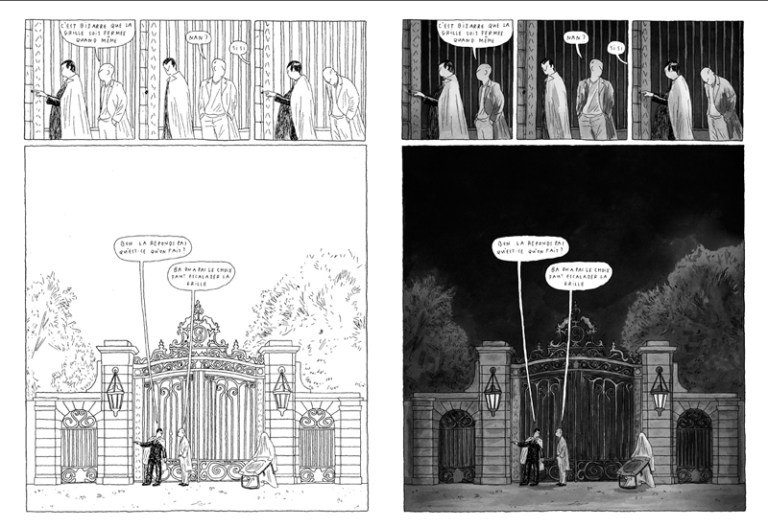 J.-L. C. : On pourrait penser la mise en couleurs comme la part émotive, l’ambiance, dans la bande dessinée. En même temps, elle pourrait exercer un rôle d’accroissement de la lisibilité, d’éclairage ? Bref, une part subjective, une part objective. Pourrait-on comparer cela au rôle de la musique dans un film ?