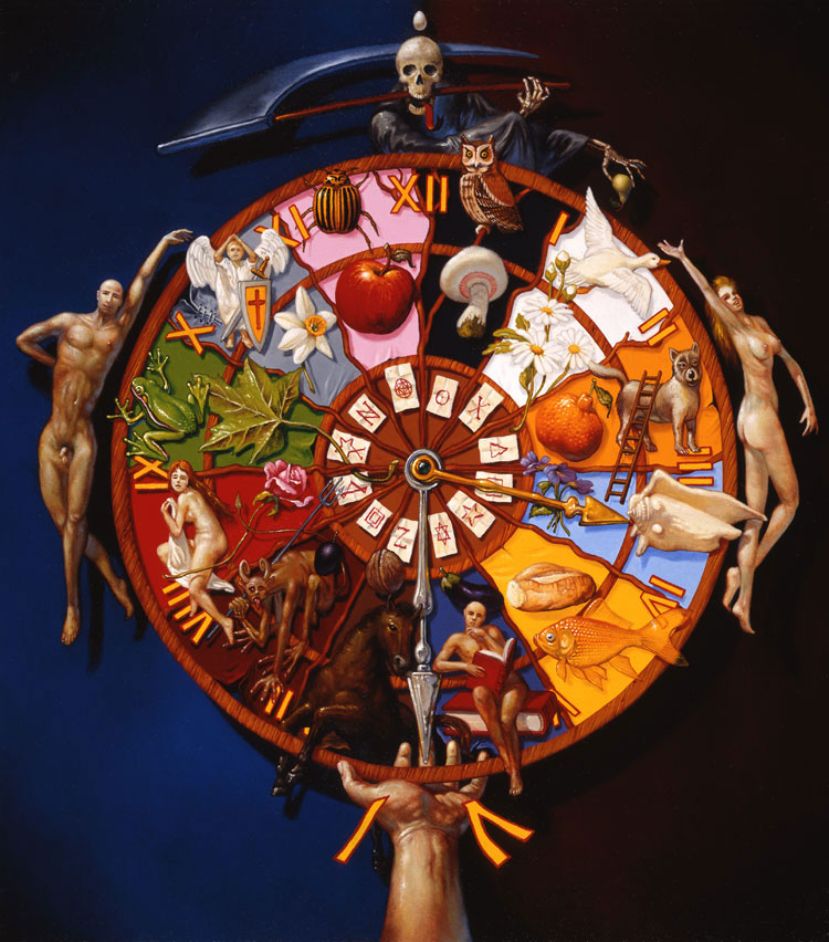 JOSÉ ROOSEVELT : Je trouve toujours difficile de parler de mon propre travail, j’ai l’impression de ne pas atteindre assez de recul pour le faire. Cela dit, un tableau surréaliste, vu qu’il est une expression de l’inconscient, contient en profondeur, cachée, cette dynamique qu’on trouve dans le monde onirique : en effet, un rêve se forme d’une séquence de situations. Le tableau se présente, alors, un peu comme un moment figé d’un récit. Je pourrais dire que, en conséquence, une bande dessinée est une succession de ces moments figés… ou une succession de tableaux.