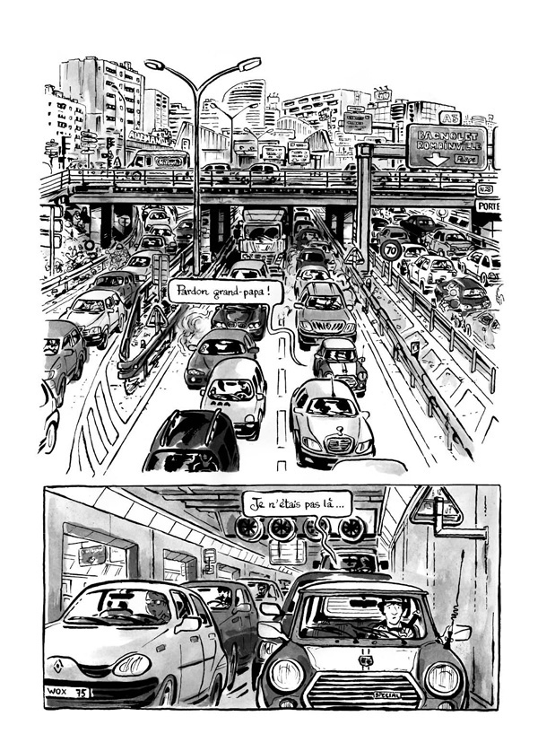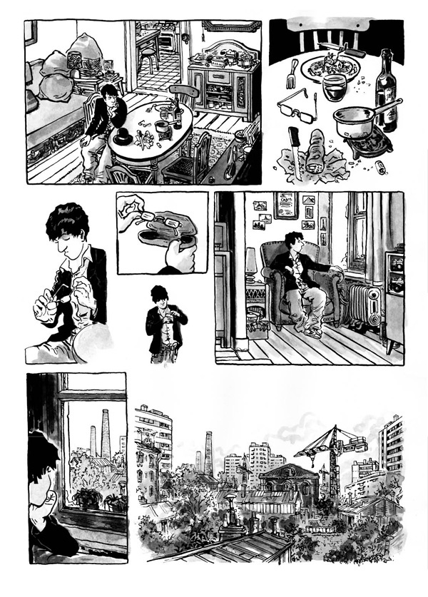 Car c’est dans un luxe de détail qu’il réussit l’essentiel : non seulement nous donner à voir des dessins toujours limpides dans leur précision scrupuleuse mais en plus une narration jouant avec une rare maîtrise du temps. Ainsi lorsque l’histoire atteint son apex, que le lecteur à vraiment besoin de savoir ce que l’intrigue cache, comment tous les éléments doivent s’assembler et les ombres entre aperçues se montrer dans leur totalité, l’auteur accélère, passe en mode muet et nous balade longuement dans un autre monde fascinant tant sa réalité est éclatante. Pas besoin de texte, le parcours dure, explique seulement par l’image, résout les énigmes, les rends désuètes, insiste sur la réalité et sa rude lumière.