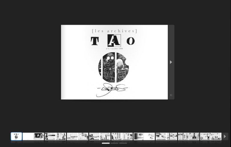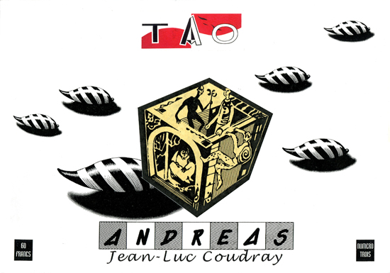 Goossens étant le génie indiscutable, Jodorowsky le dramaturge radical, le numéro 3 de TAO voulant rester à ces niveaux d’excellence il nous fallait changer, gravir d’autres sommets, jusqu’à trouver en sa caverne celui qui nous permis de tremper nos lèvres dans le Graal de la BD : l’Alph’Art d’Angoulême, l’artiste ultime : Andreas.