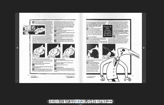 L’entretien évolue donc par circonvolution en spirales vers l’idée de « Structure Absolue ». C’est flagrant dès la question de Jean-Luc Coudray sur Dieu (« Lit-il tes bandes dessinées?« ) où David B passe de la cabale à Raymond Abellio avec le Tao en contrepoint. Heureusement pour la lisibilité de ces notions floues par définition on retombe vite sur l’importance du dessin comme signe. Souligné par l’épure du trait et surtout ce cri : « Je m’en fous de la virtuosité » !