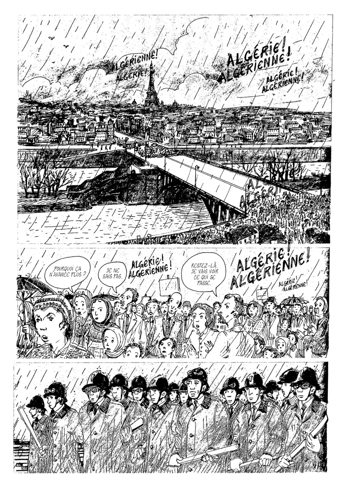 Et je vous le promet si tant est que vous partagiez l’humanité commune des personnes décrites : vous pleurerez aussi. C’est même un bon début pour ensuite connaître une saine colère envers un monde qui donne comme Eldorado un bidonville puis une cité de transit et enfin, au pinacle, un HLM « ce doit être tout là-haut. avec les français ! » rêve un algérien rescapé du massacre de 1961 lorsque Papon dispersa dans le sang et la noyade des manifestants pour la plupart pacifiques réclamant seulement un peu de dignité.