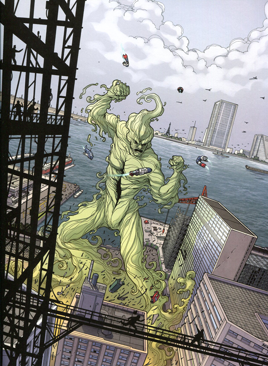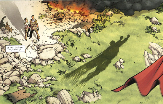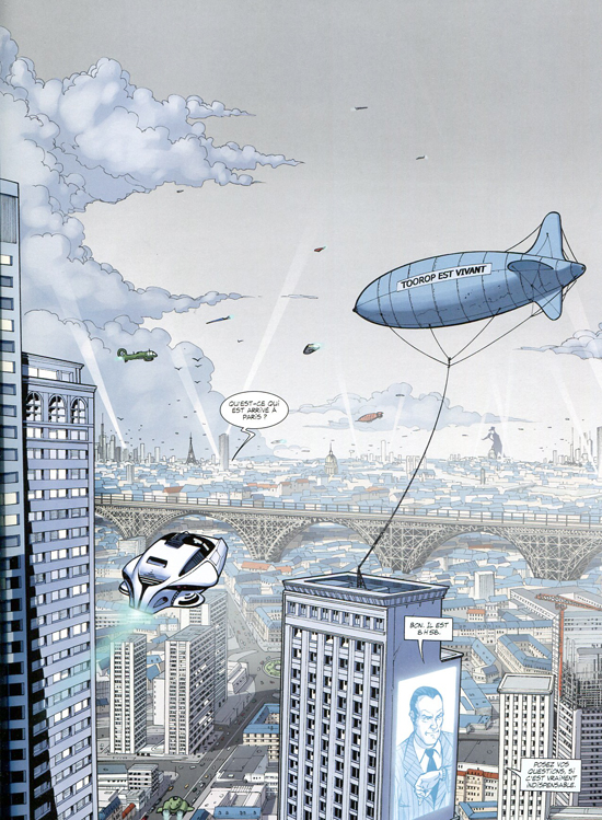 Guy Debord pour une fois cité non pas pour « La société du spectacle » mais pour un autre de ces concepts amusant : la psychogéographie, dont semblent adeptes quelques personnages essentiels du récit au point de comploter pour donner corps littéralement à l’esprit du lieu. Ici impossible de ne pas mentionner une fois de plus Alan Moore très impliqué lui aussi en ce moment par « la géographie de l’âme ou “psychogéographie” » (voir l’article récent sur sa biographie ICI). Simplement Serge Lehman et Stéphane Créty nous montrent comment l’âme d’une cité peut s’incarner dans un héros revenu de ses tréfonds. Et c’est assez spectaculaire ! Le premier tome Anomalies nous les présente, le deuxième Le jour du fuseur nous les montre en pleine bataille dans une ville grande ouverte aux prouesses super-héroïques. Car si il y a des références précises et insolites pour encadrer l’action celle-ci, comme dans La Brigade chimérique, ne lésine pas sur le grand angle et la démesure aérienne. Serge Lehman sait entrecroiser différents axes dans son histoire centrée sur un soldat perdu d’une guerre caucasienne, manipulé par des forces complexes, exilé dans l’appartement parisien d’une sœur elle-même au cœur de l’intrigue.