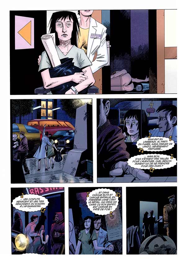 Ne serait-ce que pour combler les trous presque jamais laissés à vide. Une chanson ne traîne jamais de case en case par hasard, elle narre aussi l’image. Celles-ci non plus ne sont gratuites même si coupées et parfois semble-t-il malencontreusement incomplètes : à vous de combler les blancs des multiples sous-textes graffés d’affiches en couvertures de magazine, de pubs en annonces de films ou de disques. Ainsi vous verrez peut-être qui dédicace de sa célèbre patte son sculpturale pseudo affiché dans l’appartement d’Orlando.
