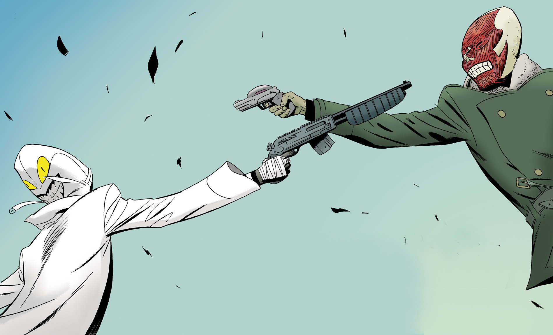Y est aussi cité un autre habitué d’EO : « j’ai fini avec quelque chose qui rappelle davantage un personnage de Mœbius » et le talent époustouflant de Marcos Martin y fait plusieurs fois penser. Au point même, pour un très vieux lecteur de BD, de se laisser bercer par une impression très prégnante de Métal Hurlant. Le style décalé usant facilement des concepts de polar moderne immergés dans un éternel futur, l’histoire se jouant des fausses anticipations en démontant les passés imaginaires par un retour dans un avenir piégé, les références rock , post ou neo punk : on y croit, on y est même !